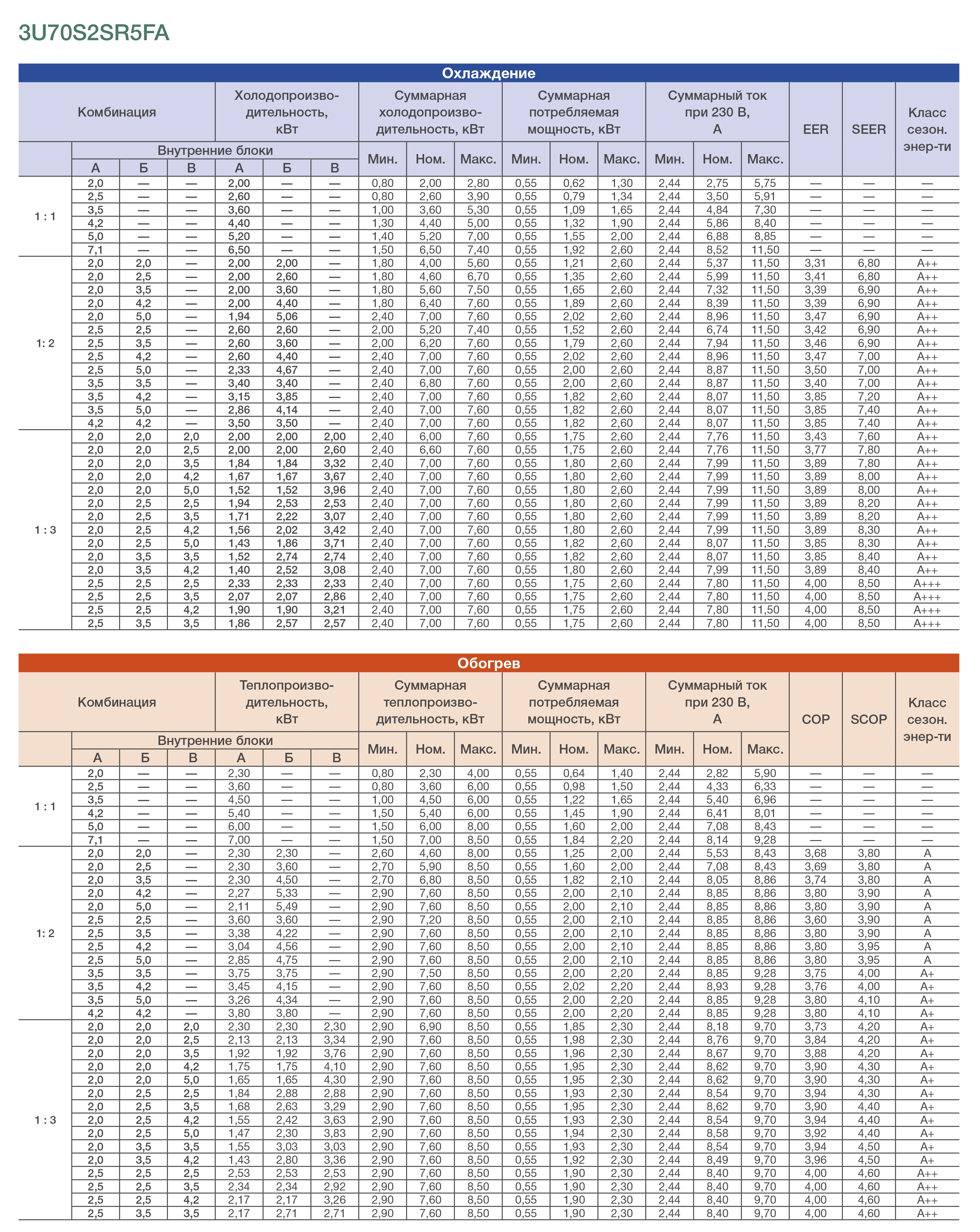 Рассчитан на подключение 3 внутренних блоков. Подобрать внутренние блоки для данной модели можно здесь.