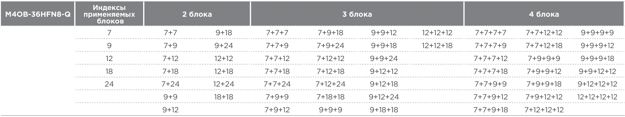 Блок рассчитан на 4 помещения, общей площадью до 100 кв.м. Комбинации внутренних блоков подбираются индивидуально, подходящие внутренние блоки Midea можно выбрать здесь.