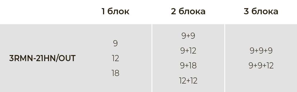 Количество подключаемых внутренних блоков: