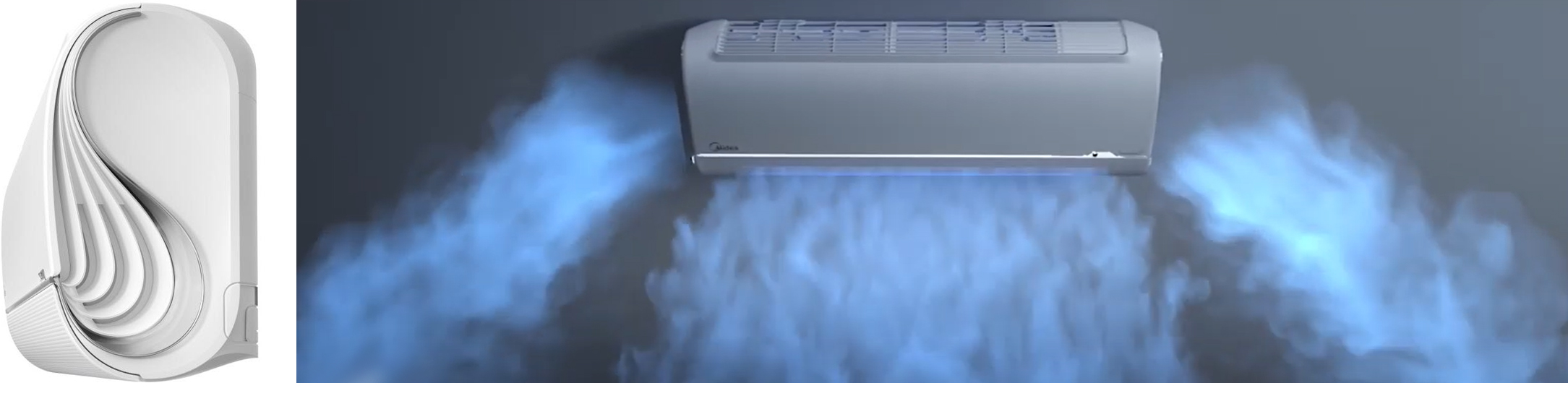 Запатентованная технология TwinFlapТМ: двойные жалюзи с широким углом раскрытия, высокое переднее воздуховыпускающее отверстие и максимальная скорость вентилятора — обеспечивают сверхбыстрое охлаждение воздуха в помещении.