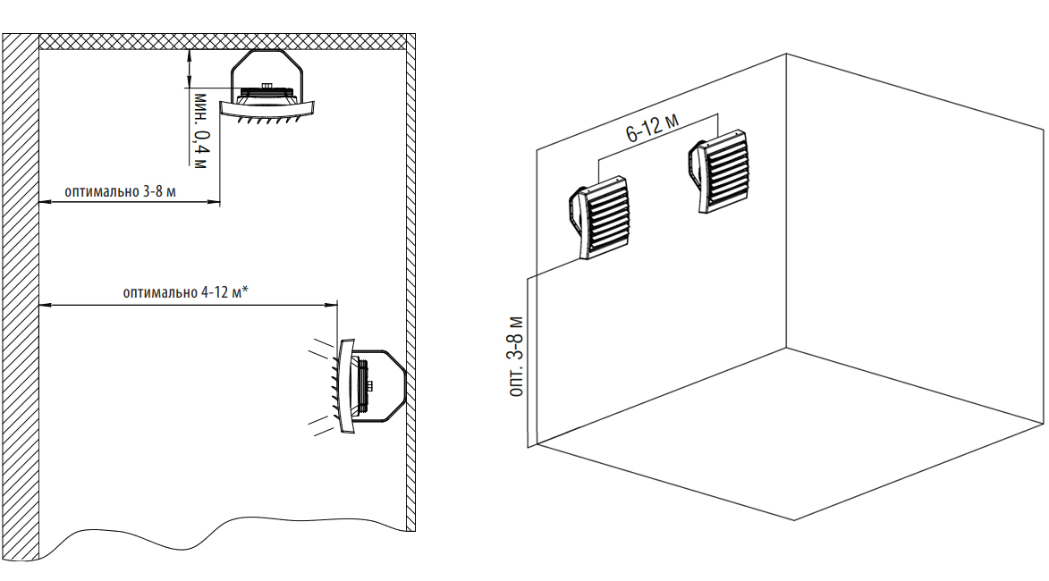 - Различные варианты установки — горизонтально, вертикально, на шпильках, на тросах.