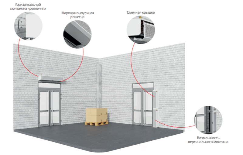 Путем создания мощного потока надежно защищают помещение от попадания теплого или холодного воздуха, пыли, насекомых. Повышают эффективность отопления, сокращая эксплуатационные расходы. Предназначены для установки в складские помещения, производственные комплексы и цеха, логистические центры, автосервисы, подземные паркинги и т.д.