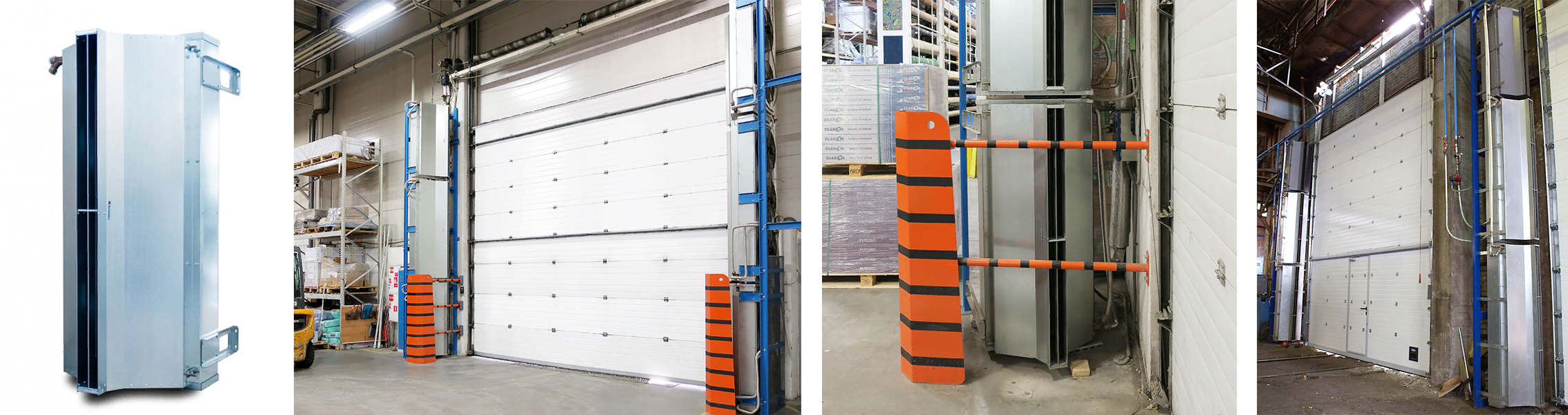 Промышленная тепловая завеса шиберующего (отсекающего) типа из оцинкованной стали. Устанавливается внутри помещения, горизонтально над проемом или вертикально, сбоку от него, как можно ближе к краю. При большой ширине проема можно располагать сразу несколько завес вплотную друг к другу и управлять ими с одного пульта. Применяется в складских помещениях, цехах, гаражах, производственных предприятиях, ангарах и других помещениях большой площади.