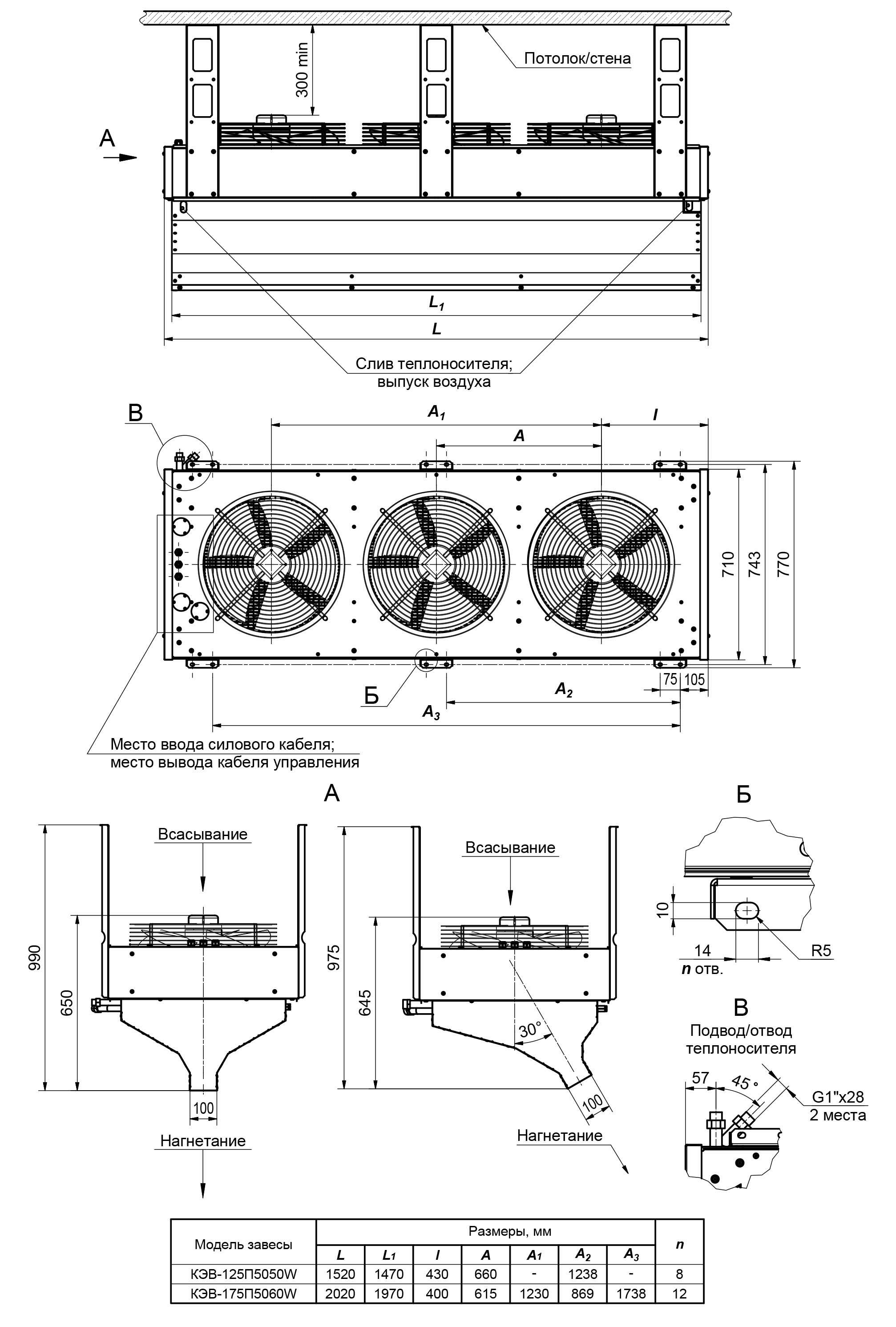 Габаритные и установочные размеры: