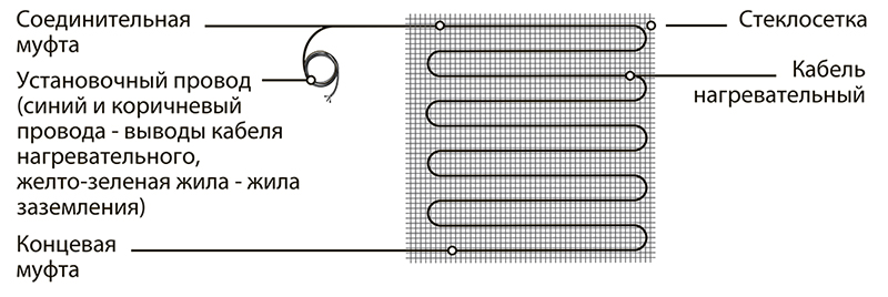 - Шаг раскладки кабеля на сетке — 5 см (на 35% плотнее аналогов), что обеспечивает более равномерный прогрев поверхности.